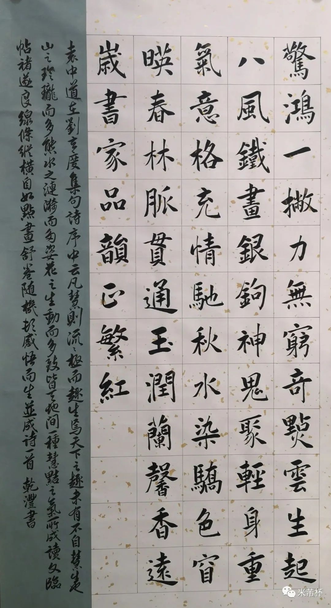 感谢书法,它让我的性格变得更加沉着冷静,让我的学习变得更加专注持久,让我的人生变得更加丰富精彩。它开阔了我的眼界,培养了我的兴趣,陶冶了我的情操,也让我收获了快乐,弘扬了文化,传承了文明……有了书法,才有了自信、大气、阳光、包容的我。