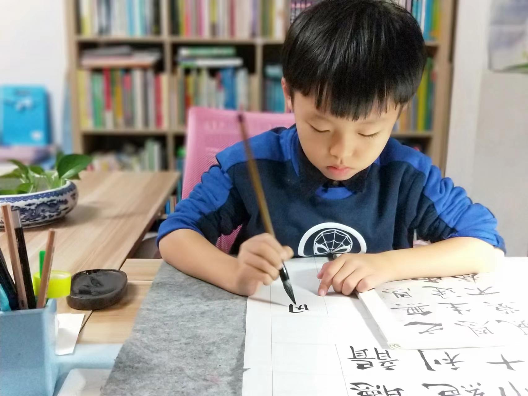 一周又一周,一年又一年,寒来暑往在学期里、假期中。妈妈坚持陪我奔波,伴我练习,我也是鼓着劲儿地跟见山老师学习书法,听他的指引、教导与激励……