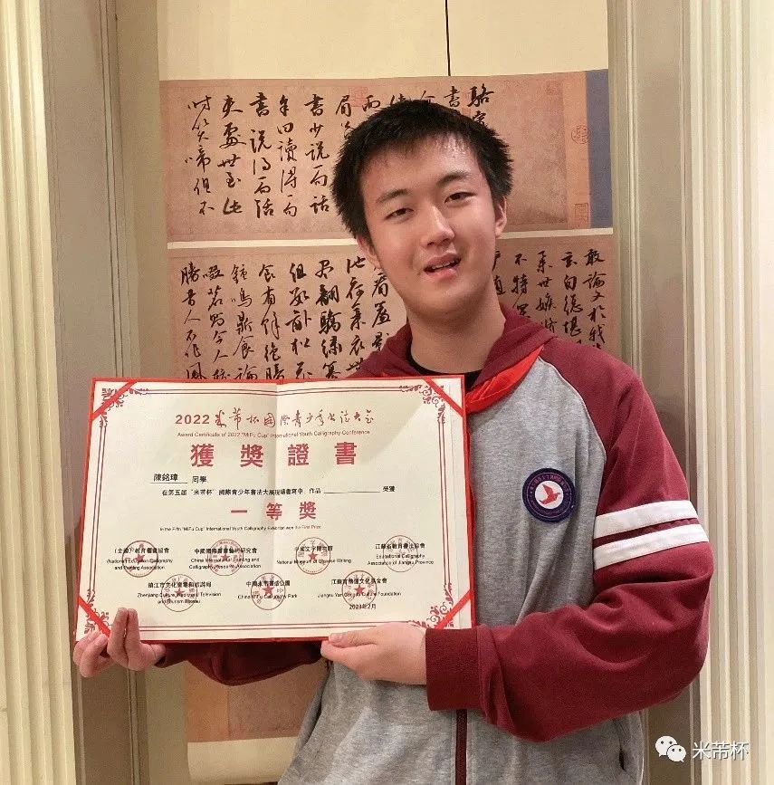 2022年,荣获第五届“米芾杯”国际青少年书法大展一等奖。