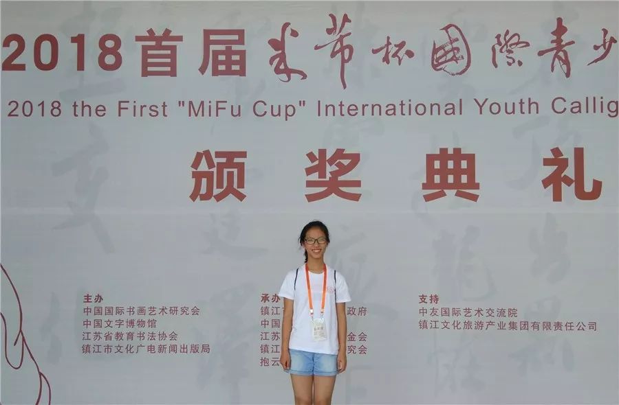 2018首届“米芾杯”国际青少年书法大赛少年组一等奖。