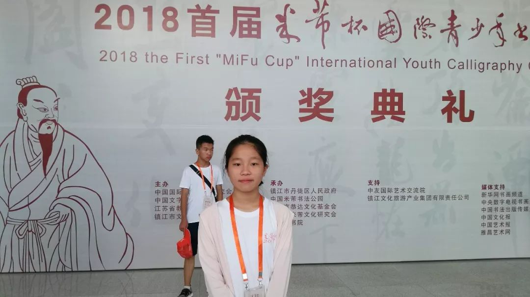 2018年,首届“米芾杯”国际青少年书法大赛一等奖。