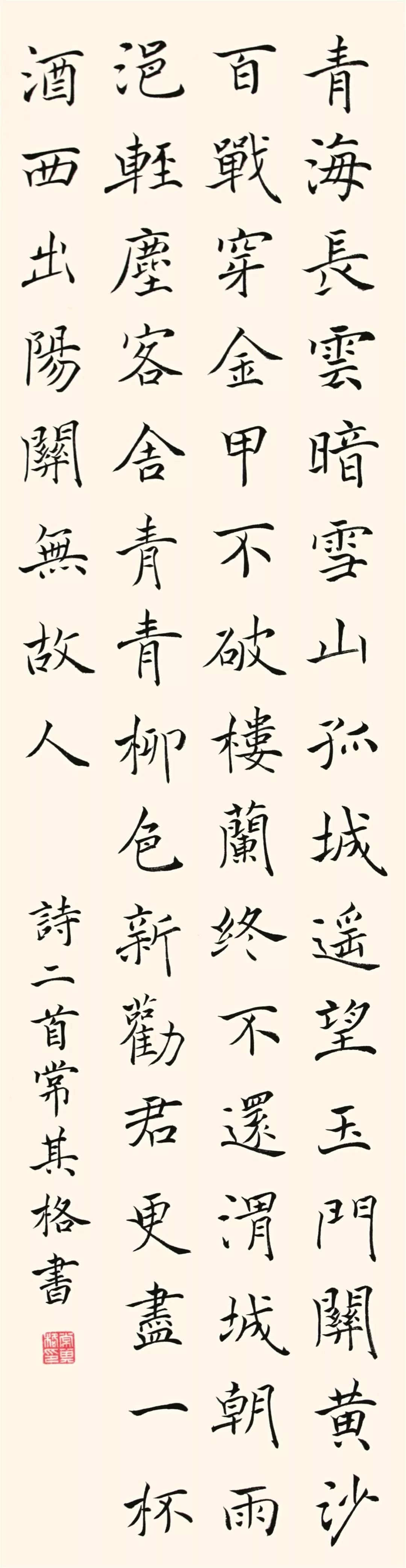 常其格,女,15岁,河南永城职业学院附中学生。7岁学书,多次获得全国、省、市大奖。获奖经历:2014年,入展第八届“中国·万宁”全国中小学生书法节; 获首届北京书画大赛二等奖;2015年,获“陶行知杯”第二届全国中小学生书法大赛一等奖; 获“人教墨香”全国中小学生书法大赛最高奖;2016年,获第五届全国中小学生艺术展演书法作品三等奖; 获河南省第五届中小学生艺术展演书法作品一等奖; 获“中华好书法”首届全国中小学师生书法大赛三等奖;2018年,获首届“米芾杯”国际青少年书法大赛一等奖。