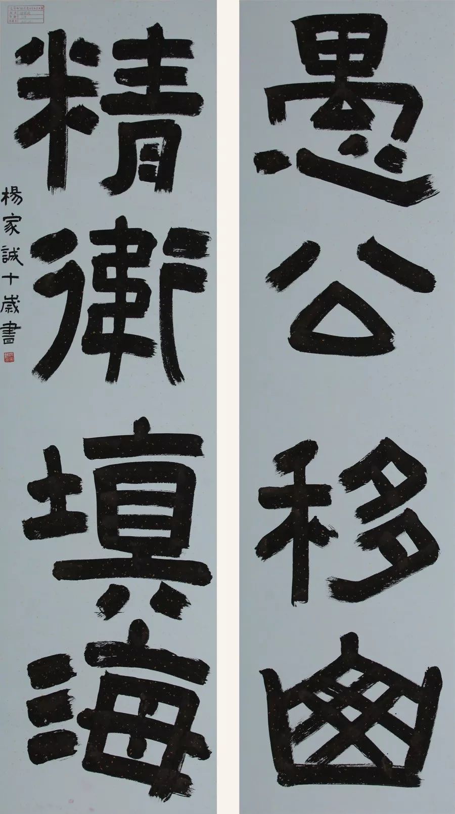 杨家诚,男,2007年9月9日生,黑龙江齐齐哈尔人。就读于齐齐哈尔市富拉尔基区向阳路小学四年级。在齐齐哈尔市静石斋书法工作室学习书法。获奖经历:2016年,入围《书法报》第十二届全国少儿书画现场大赛。2017年,入展黑龙江省首届中小学师生书法展; 取得中国书法家协会社会艺术水平考级六级。2018年,获第四届北京中小学生书法节小学高年组二等奖; 入围《书法报》第十四届全国少儿书画现场大赛; 获首届“米芾杯”国际青少年书法大赛少年组一等奖。