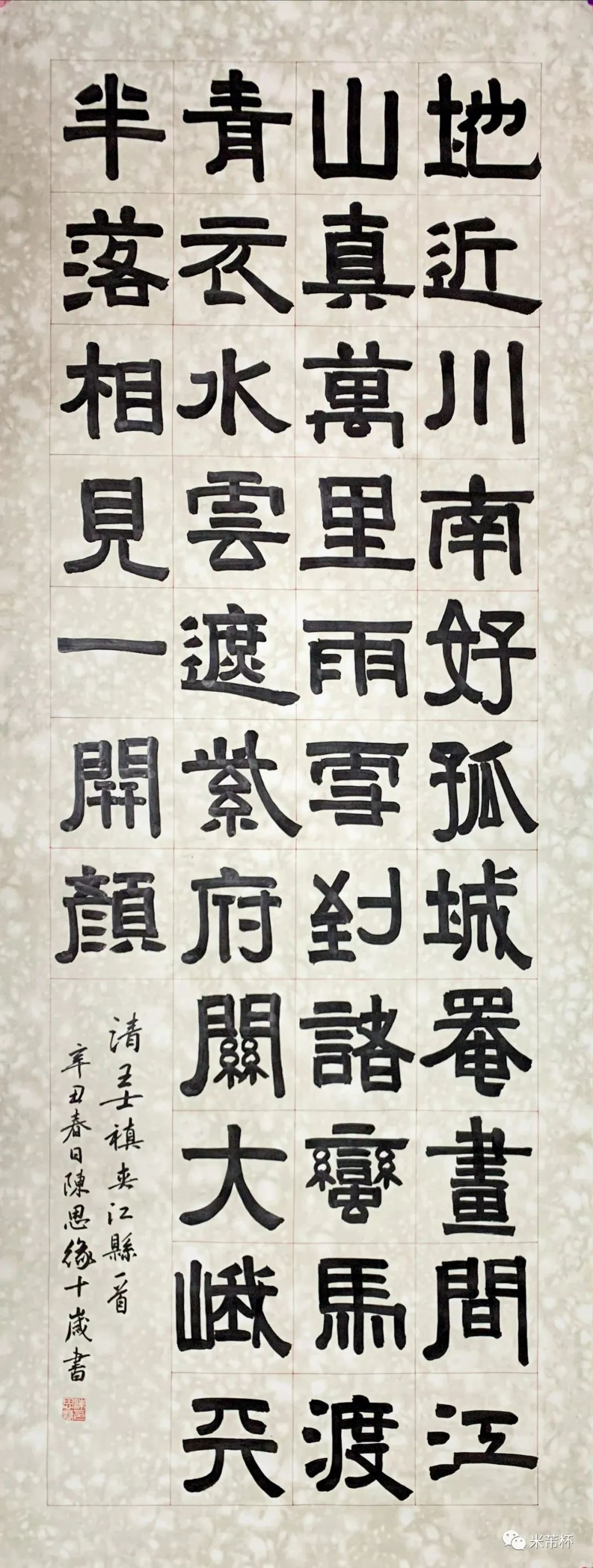 终于功夫不负有心人,我在这一次“米芾杯”国际青少年书法大展中获得了一等奖。虽说比赛的成绩是对我多年来勤奋练习书法的肯定,但对我来说,书法已经成为我生活中重要的组成部分,每一天书写练习都是我结束一天学习后的静心宁神,在书写的过程中犹如我在与笔、墨、纸对话。书法培养了我耐心有毅力的学习品质,也让我时刻保持谦卑静心的学习态度。感谢每一次比赛带给我的成就感,也感谢书法带给我的美好体验。