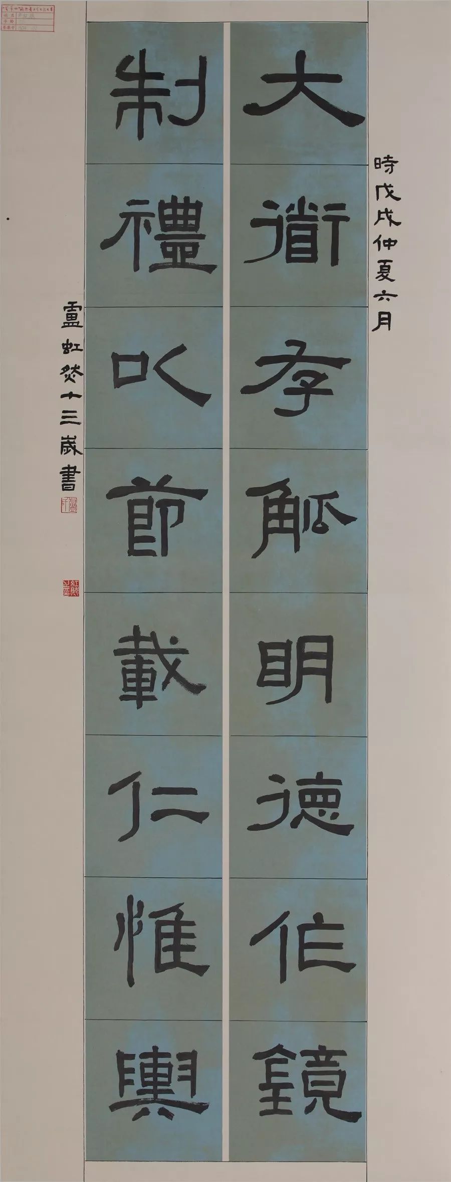 卢虹燃,女,2015年9月14日生,河北承德人。就读于承德上板城初级中学。获奖经历:第七届青少年书画现场大赛金奖;2018首届“米芾杯”国际青少年书法大赛一等奖。