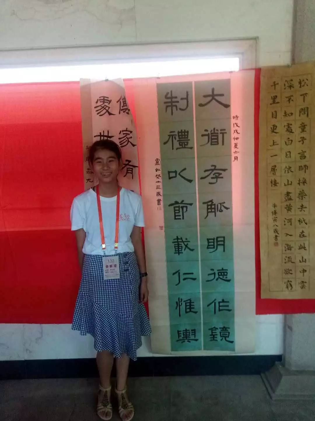 这是诸位评委老师和观众朋友们的认可。当然,这要感谢书法老师的细心指导和谆谆教诲,同时也感谢在我学习过程中一直陪伴在我身边的父母和同学,更加感恩我生活在这样一个拥有良好风气的社会环境,让我有幸能够步入书法的殿堂。