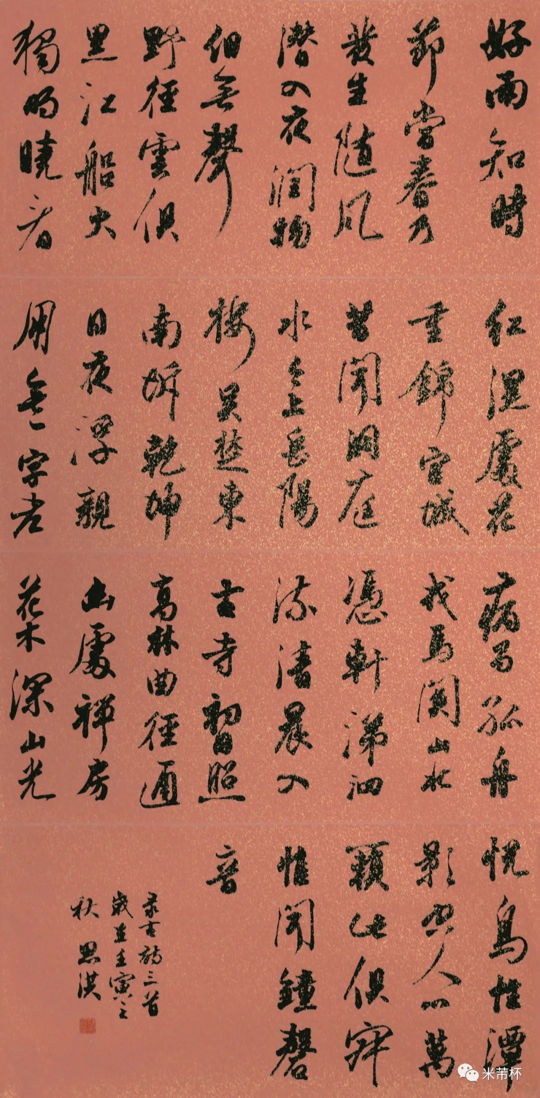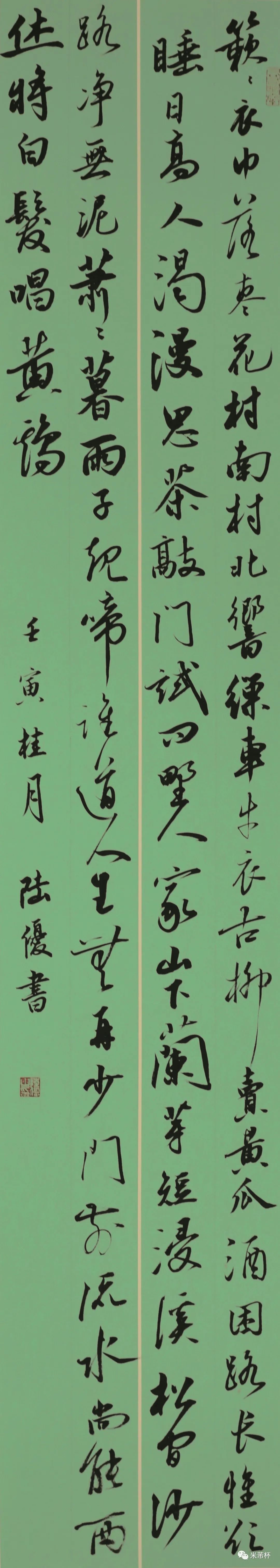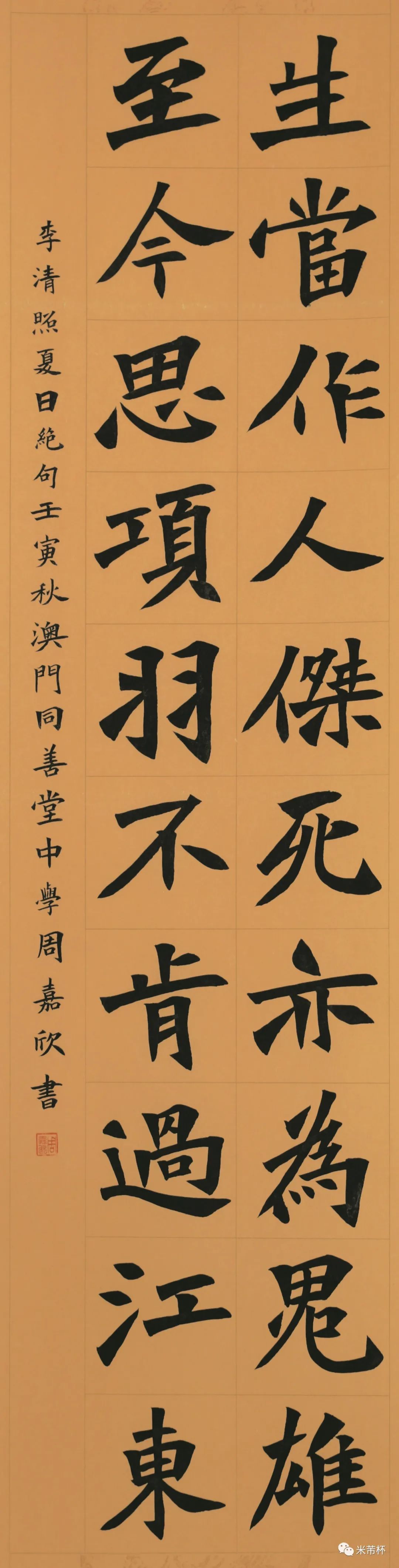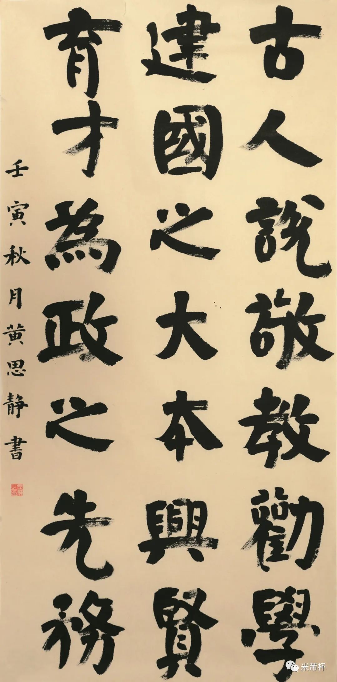“米芾杯”国际青少年书法大会系列活动的成功举办,自是离不开海内外广大培训机构、艺术工作室、专业协会等团体中书法教育工作者的全力支持、积极参与和精心安排,从而构成了强力保障,使得每次活动都得以顺畅完成。在这个过程中,我们也发现更多的耕耘在书法教育第一线的指导老师不但具有丰富的青少年书法教学经验,其自身也是创作高手,表现出相当高的艺术水准和专业素养。鉴于此,为弘扬中华传统文化,推动当代书法艺术和传统文化的繁荣与发展,提升全国中小学校及社会各界美育教育和书法教学水平。值2022年“‘米芾杯’国际青少年书法大赛”升级为“‘米芾杯’国际青少年书法大会”之时,新增了“首届‘米芾杯’全国青少年书法教师作品展”这一项目内容。