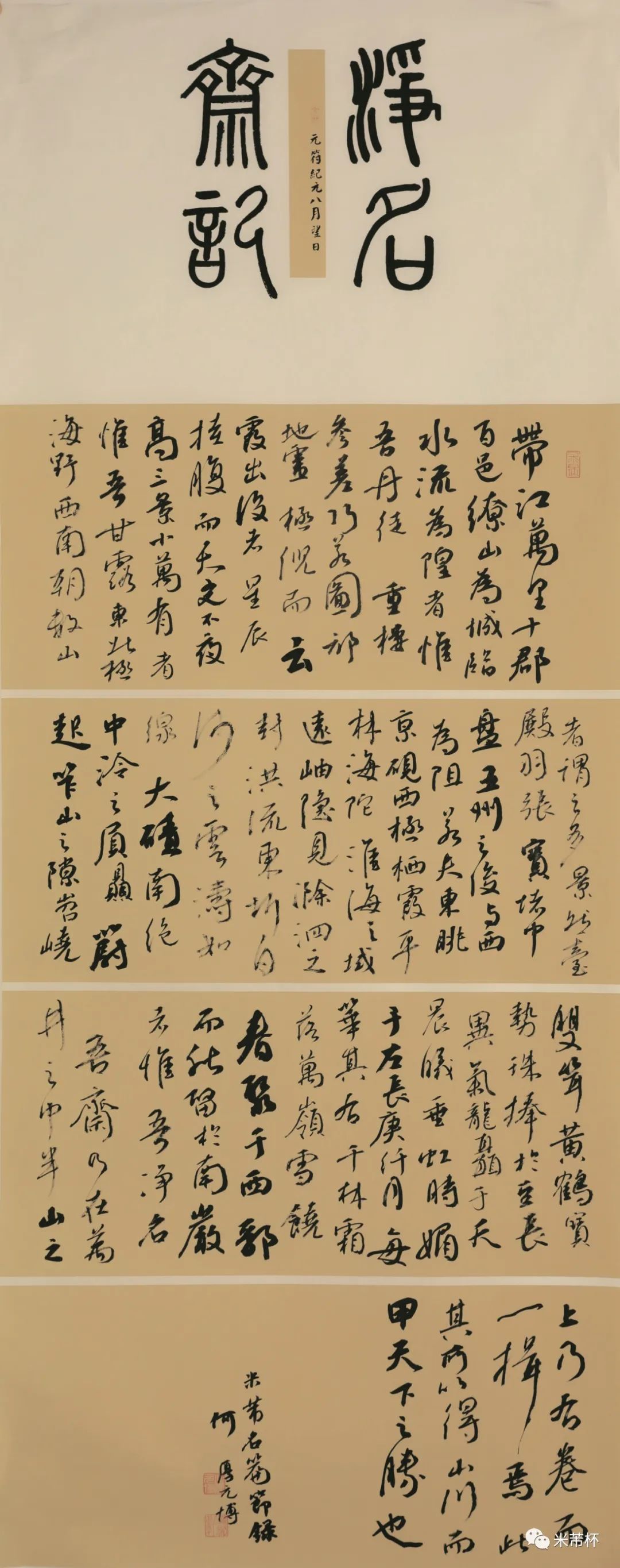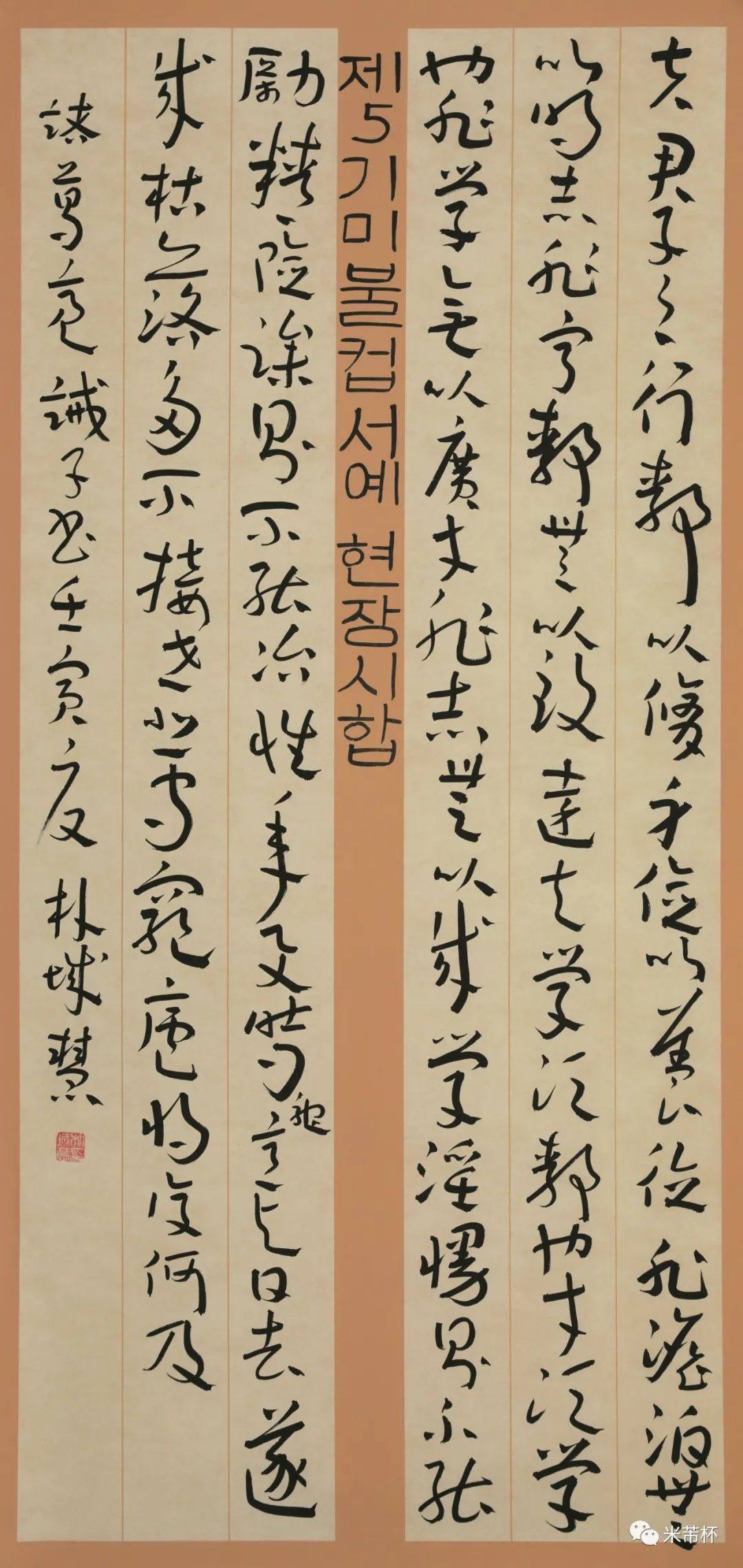 在这个大数据时代的全球化语境下,保持书写状态,掌握书法知识,增强审美能力将对中华文化的继承和发展具有重要作用。自2018年至今,我们多方合作努力,连续五届成功举办了“米芾杯”国际青少年书法大展,这对于汉字文化与书法艺术的推广与普及、传承与弘扬,尤其是对青少年素质教育,具有十分重要的意义。同时,也通过参赛选手影响到家长,重视自己灿烂的民族文化,让书写汉字成为大众的一种生活习惯与方式,重拾汉字之美。本次展览由“第五届‘米芾杯’国际青少年书法大展优秀作品展”和“首届‘米芾杯’全国青少年书法教师作品展”组成。