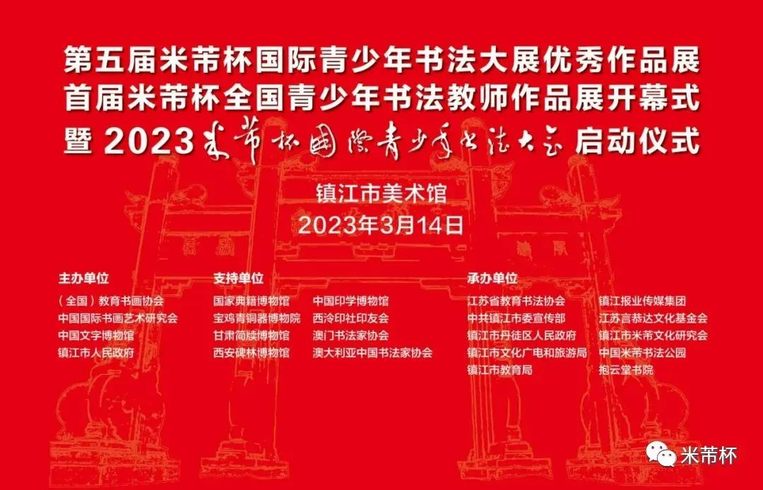 疫情将成为过去式,让我们带着希望相约“2023‘米芾杯’国际青少年书法大会”,相约第六届“米芾杯”国际青少年书法大展,相约第二届“米芾杯”全国青少年书法教师作品展,相约2023守望汉字嘉年华系列活动,相约让我们带着期盼相聚于镇江、相会于中国米芾书法公园。